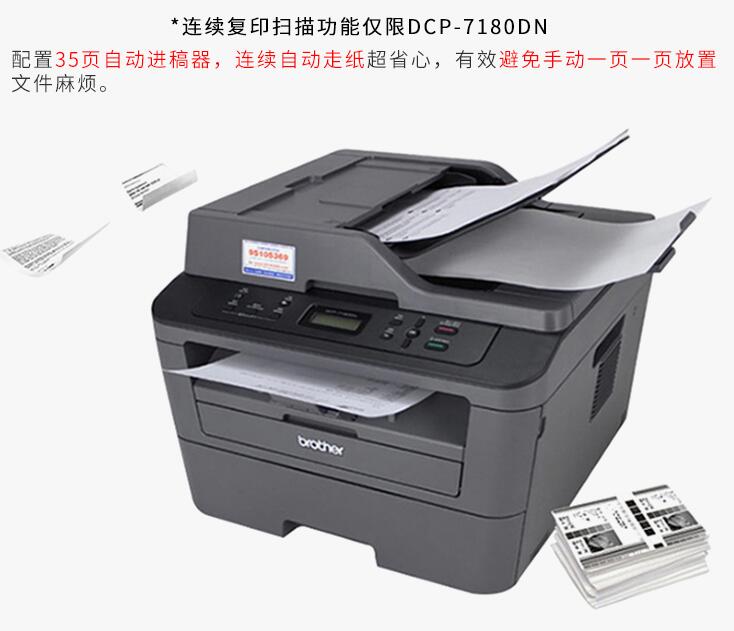 brother兄弟DCP-7080D/7180DN黑白激光打印復印掃描一體機三合一自動雙面高速打印A4家用辦公復印機打印機