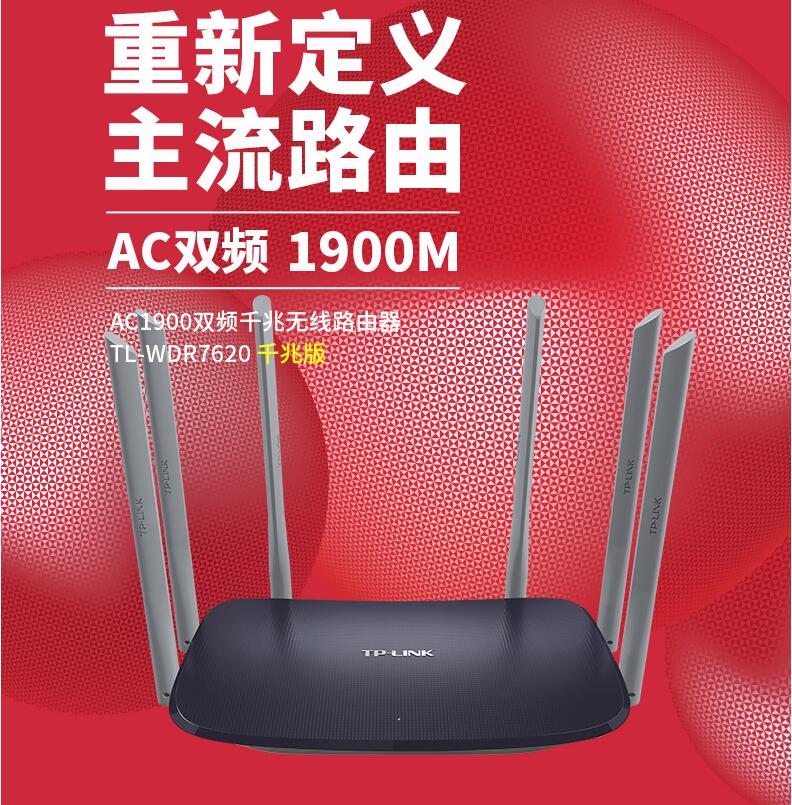 TP-LINK千兆無(wú)線路由器5G雙頻AC1900M普聯(lián)家用高速WIFI光纖大戶型穿墻電信移動(dòng)寬帶TL-WDR7620