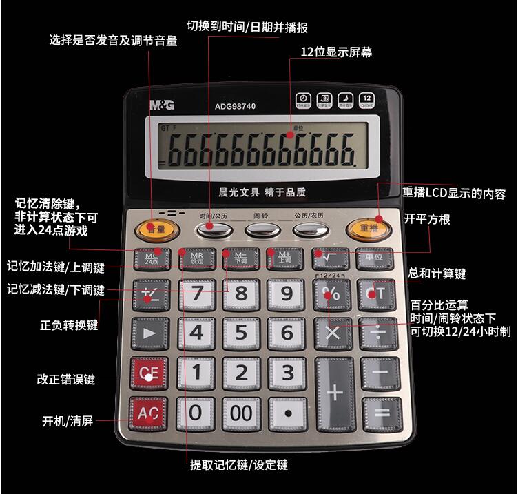 晨光計(jì)算器帶語音辦公用會(huì)計(jì)專用商務(wù)計(jì)算機(jī)辦公室大號(hào)大按鍵大屏幕女真人發(fā)音財(cái)務(wù)學(xué)生用小號(hào)便攜電子記算器