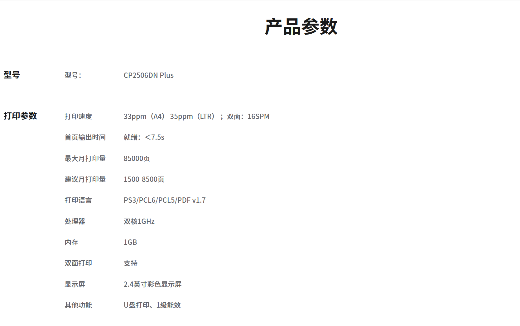 黑白打印速度(頁/分鐘 ppm)  :   33